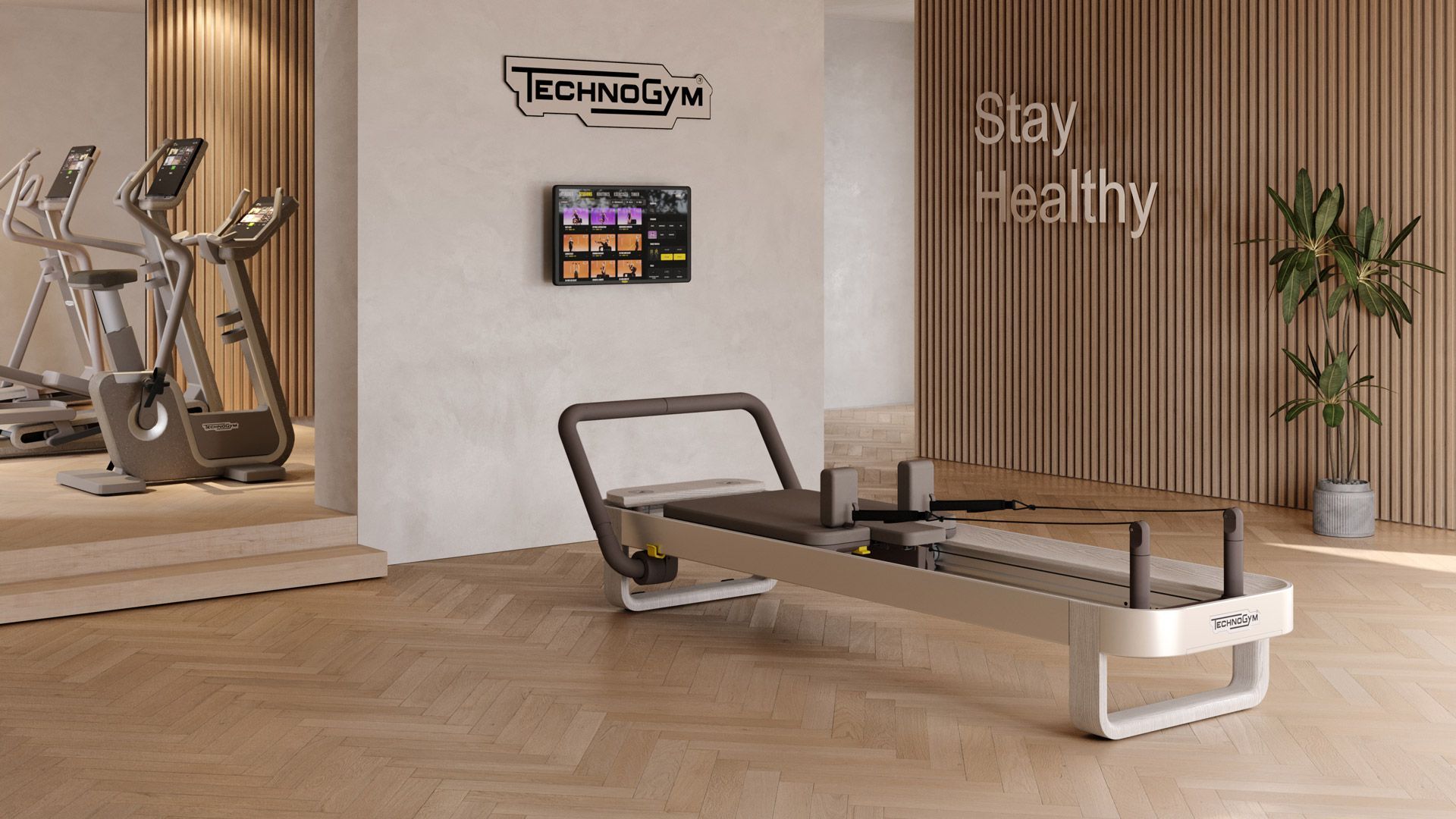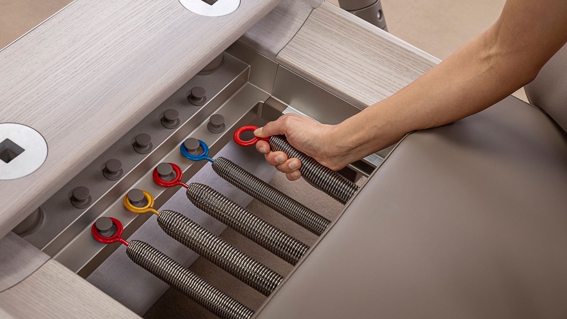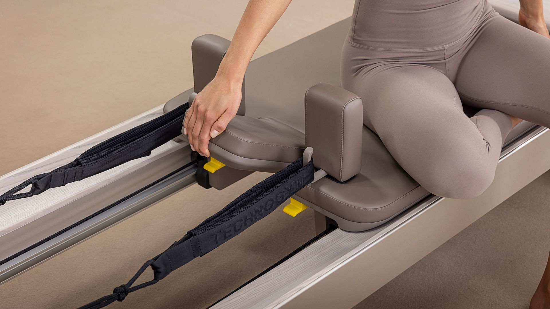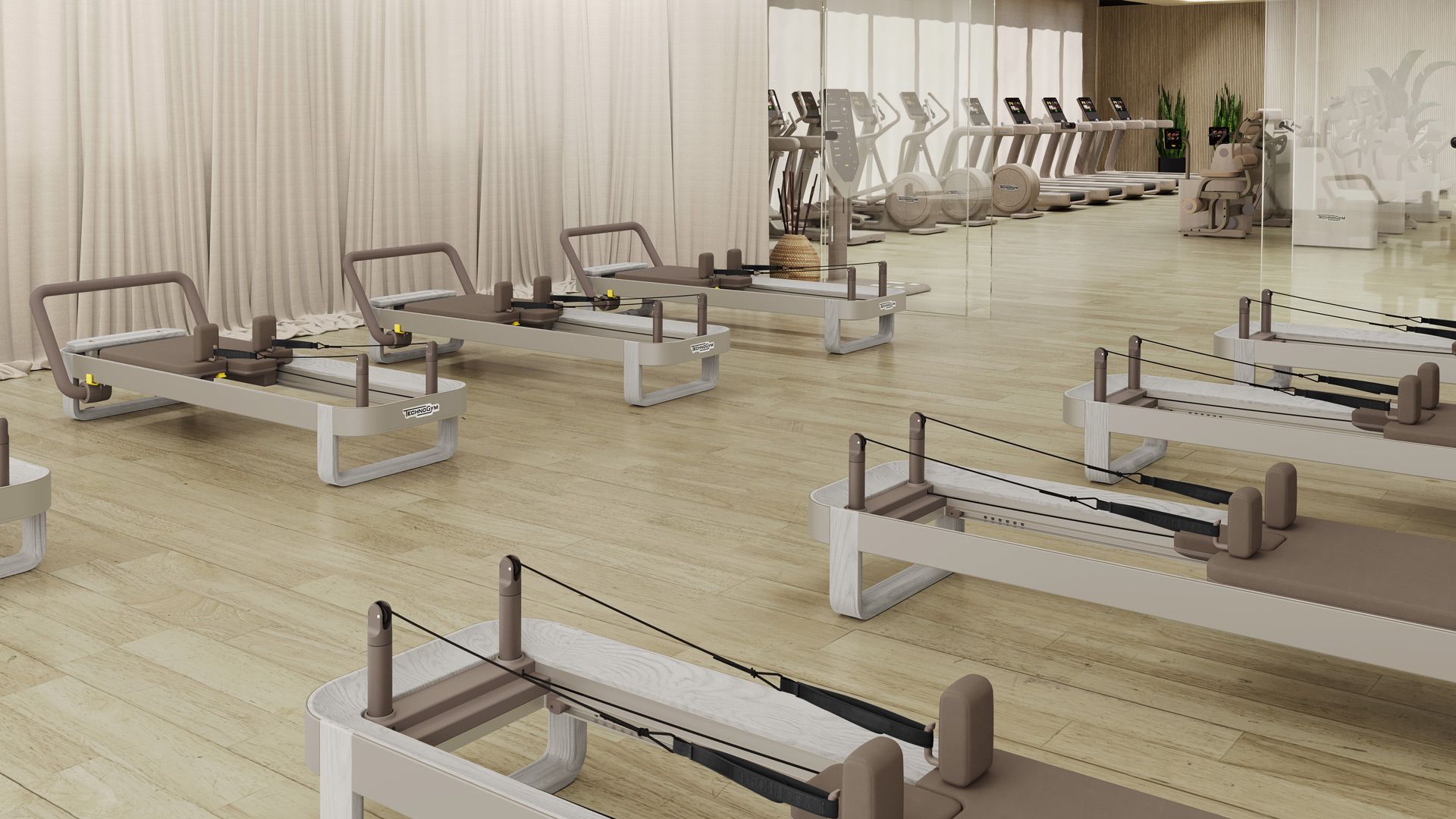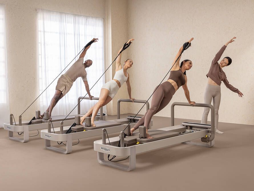 Technogym Reform offers two elegant color options to create an ideal space for Pilates: Sand Stone and Pearl Grey, designed to create a harmonious and relaxing environment, perfect for practicing Pilates.